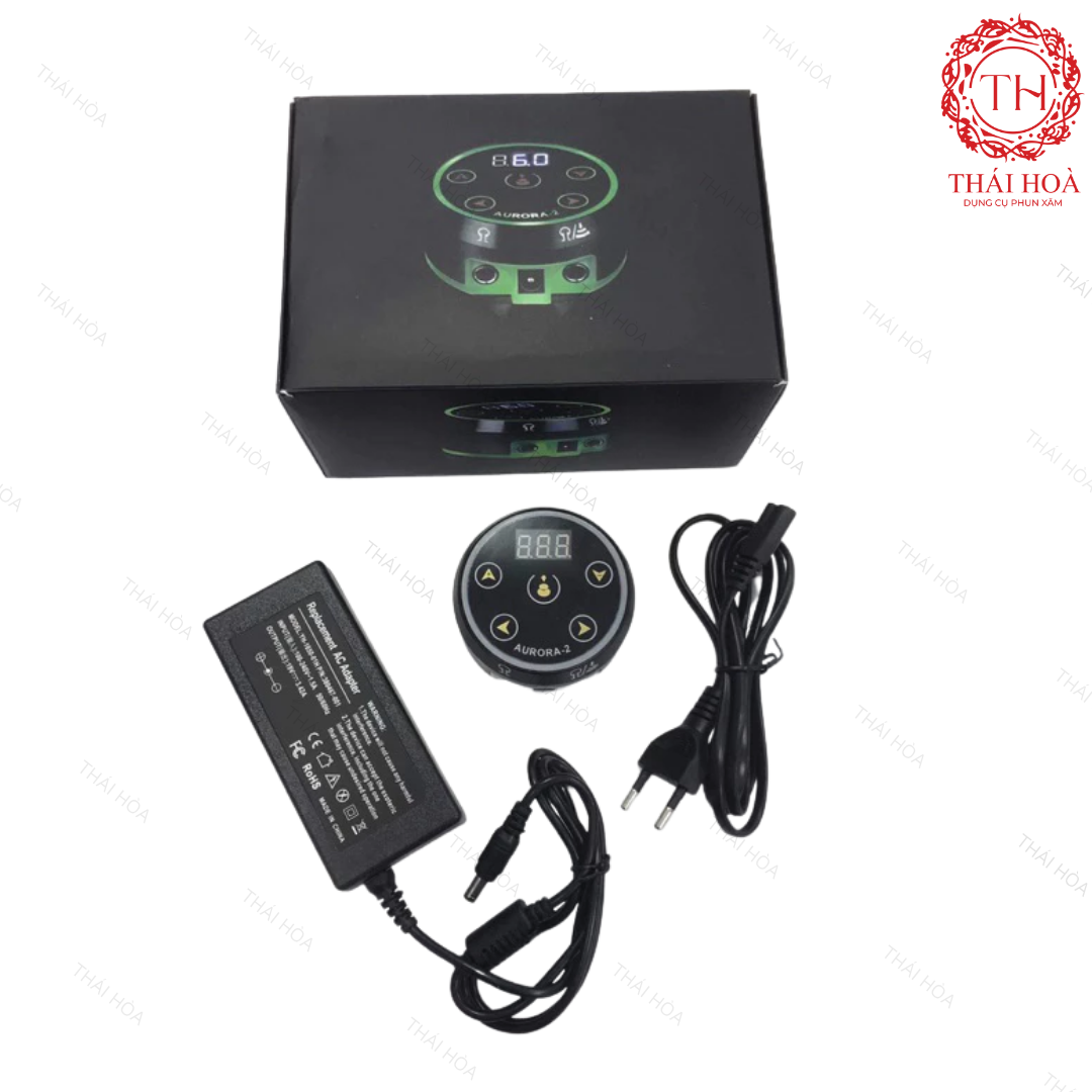 Aurora 2 là dòng nguồn ổn áp dành cho máy phun xăm với thao tác cảm ứng tiện lợi. Sản phẩm có màn hình điện tử hiển thị điện áp rõ ràng, giúp kỹ thuật viên điều chỉnh tốc độ nhanh và chuẩn. Thiết kế nhỏ gọn, có 4 chân nam châm giúp cố định chắc trên nhiều bề mặt.