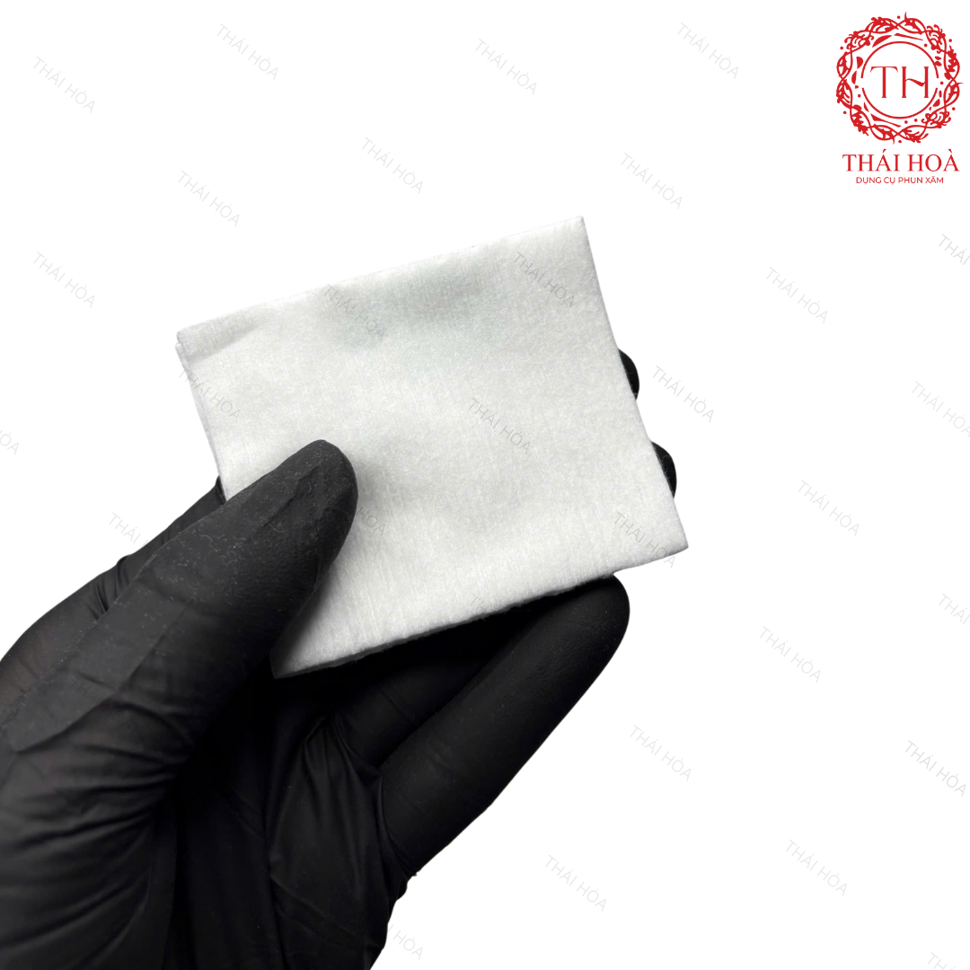 Dùng để lau mực, vệ sinh da trong quá trình phun xăm, lau dụng cụ, thấm dung dịch hoặc nước muối sinh lý. Giúp giữ vùng làm việc sạch sẽ, khô thoáng, đảm bảo an toàn vệ sinh cho khách hàng.