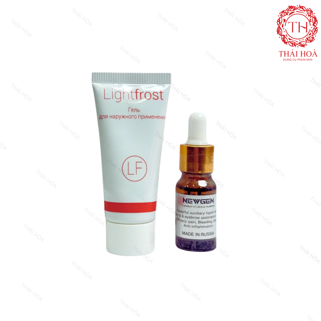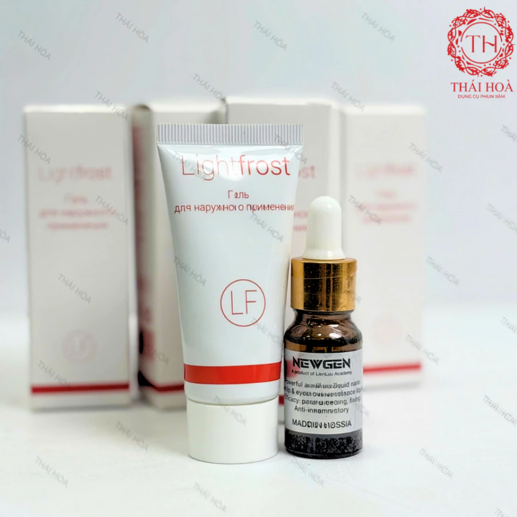 Sự kết hợp giữa Lightfrost (tê kem nền lạnh trước khi phun) và Newgen (tê nước hỗ trợ trong quá trình phun) mang đến hiệu quả kép — giảm đau nhanh, làm dịu tức thì, không gây khô hay kích ứng da. Đây là lựa chọn tối ưu cho các spa, clinic, học viện và kỹ thuật viên chuyên nghiệp.