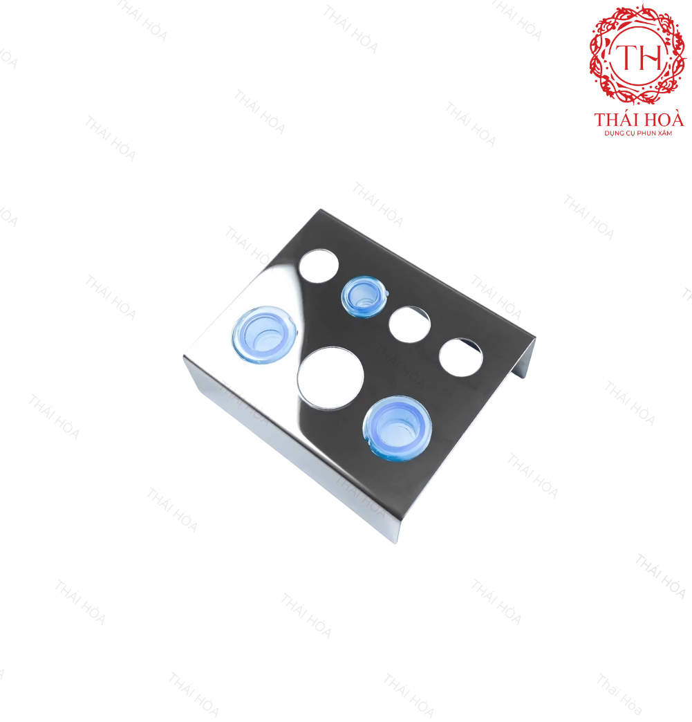 Đế Mực Inox được chế tác từ inox cao cấp, bền bỉ và sáng bóng, giúp cố định cốc mực chắc chắn trong quá trình phun xăm. Thiết kế nhỏ gọn, dễ vệ sinh, mang lại sự tiện lợi và tính thẩm mỹ cao cho không gian làm việc.