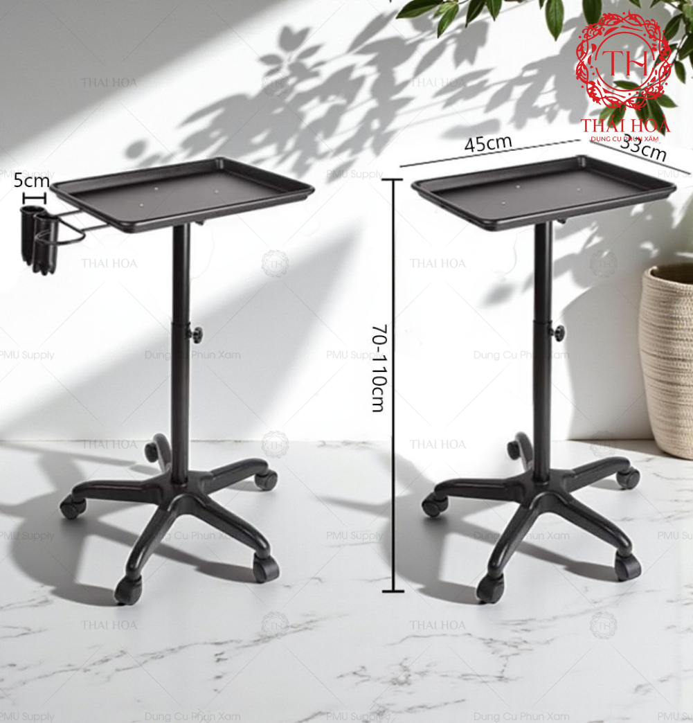 Xe đẩy đa năng 1 tầng là trợ thủ cực tiện cho spa, salon và các cơ sở phun xăm. Thiết kế sang trọng – chắc chắn – dễ di chuyển, giúp sắp xếp dụng cụ gọn gàng và thao tác chuyên nghiệp hơn trong từng buổi làm.