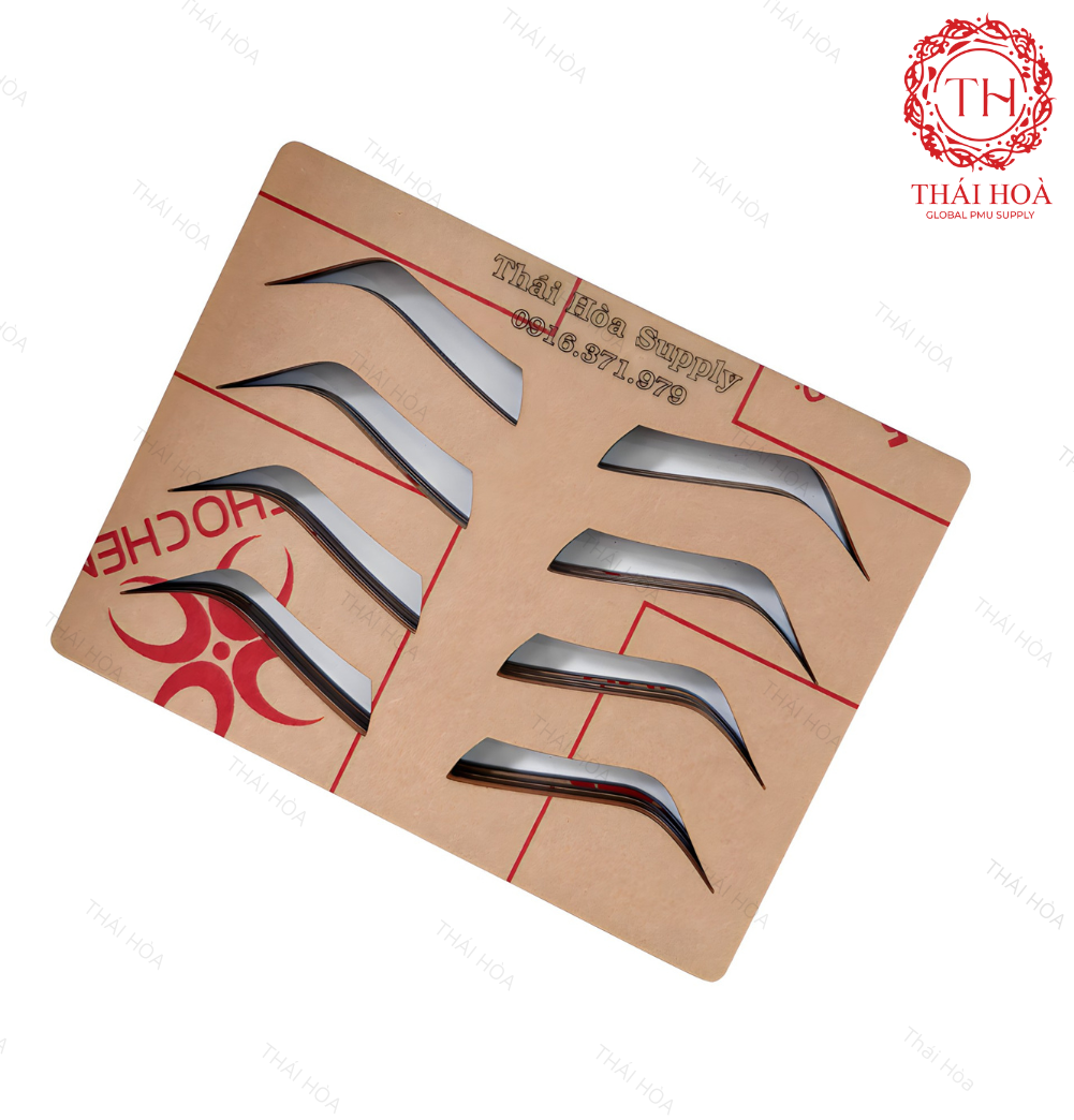 Khuôn vẽ mày chuẩn nét Thái Hòa là dụng cụ phun xăm không thể thiếu dành cho các nghệ nhân phun xăm chuyên nghiệp. Sản phẩm hỗ trợ định hình dáng chân mày sắc sảo, chuẩn form, giúp quá trình kẻ và phun xăm mày đạt độ chính xác cao, tiết kiệm thời gian chỉnh sửa.